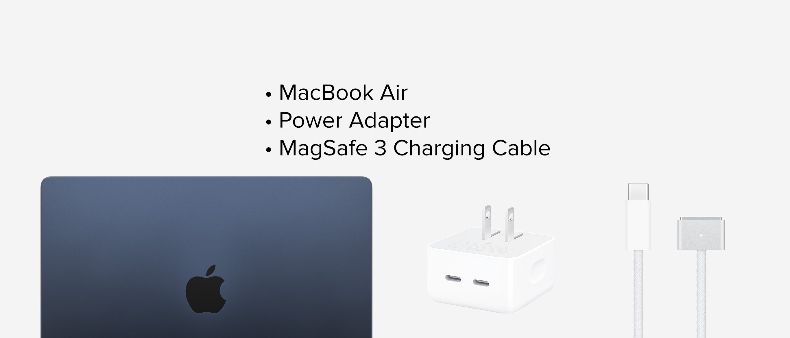 Includes power adapter with charging cable